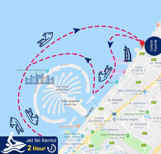 - If you want to visit Dubai, you are at the right place. Not only will you spend a great holiday time with your family, friends, loved one or solo, but you will also visit this great city of the United Arab Emirates. In Dubai all is over the top, Skyline, luxurious hotels, the tallest building in the world (the Burj Khalifa, next to the Dubai Mall), an artificial Palm. And the best sights are from the sea while riding on the blue waters of the Arabian Gulf. And especially for you we are offering jetski rental services in Dubai.